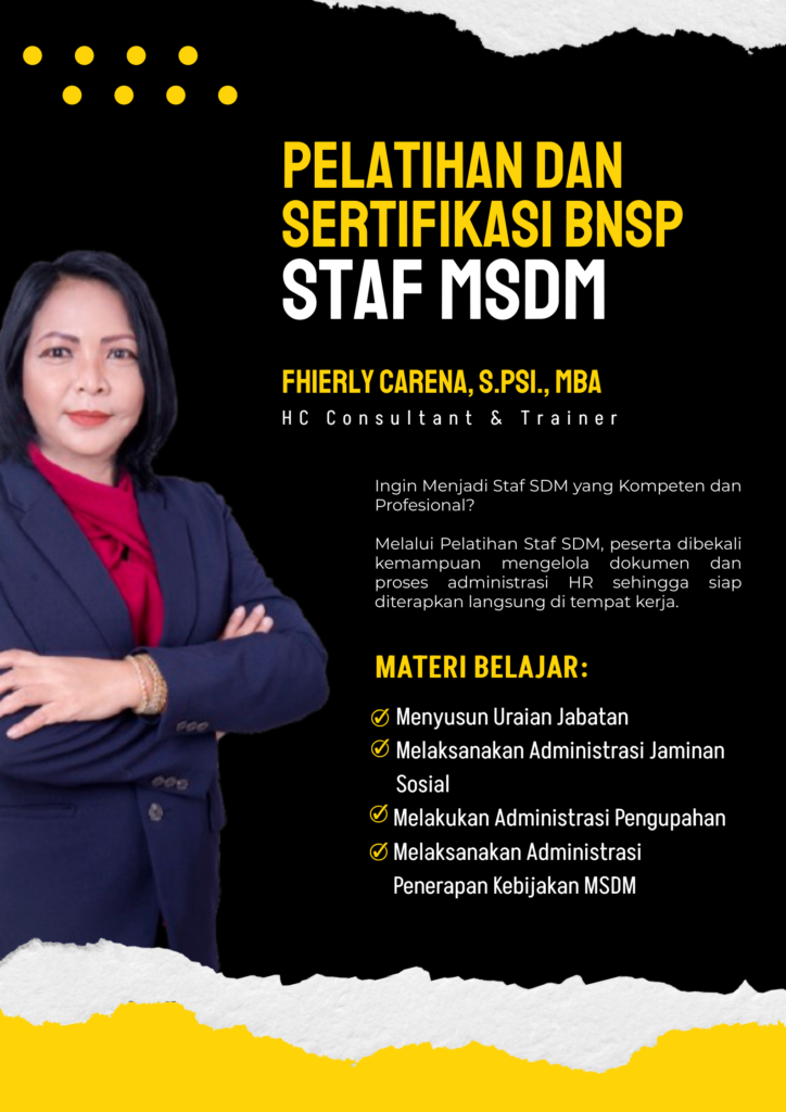 Dengan penguasaan materi yang aplikatif, peserta lebih siap mendukung fungsi HR secara operasional dan profesional.